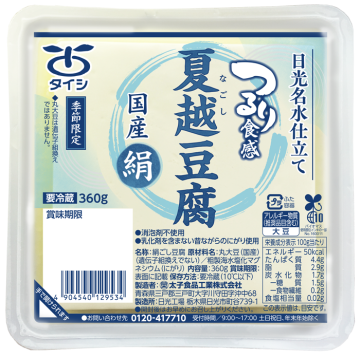北海道産大豆の旨みを活かし日光連山の伏流水とにがりだけで作りました。大豆特有の雑味も少なく、まろやかな味わいです。便利な2個分けです。