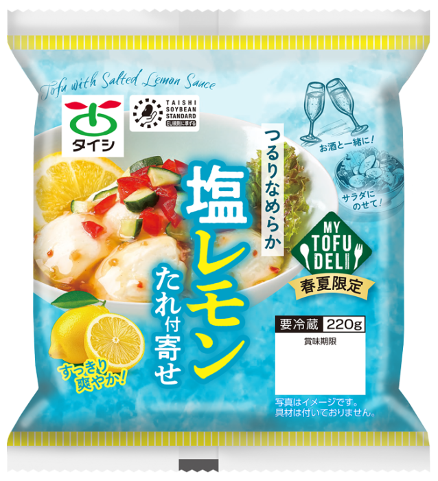 塩レモンたれがついた、つるりなめらかな食感の寄せ豆腐です。